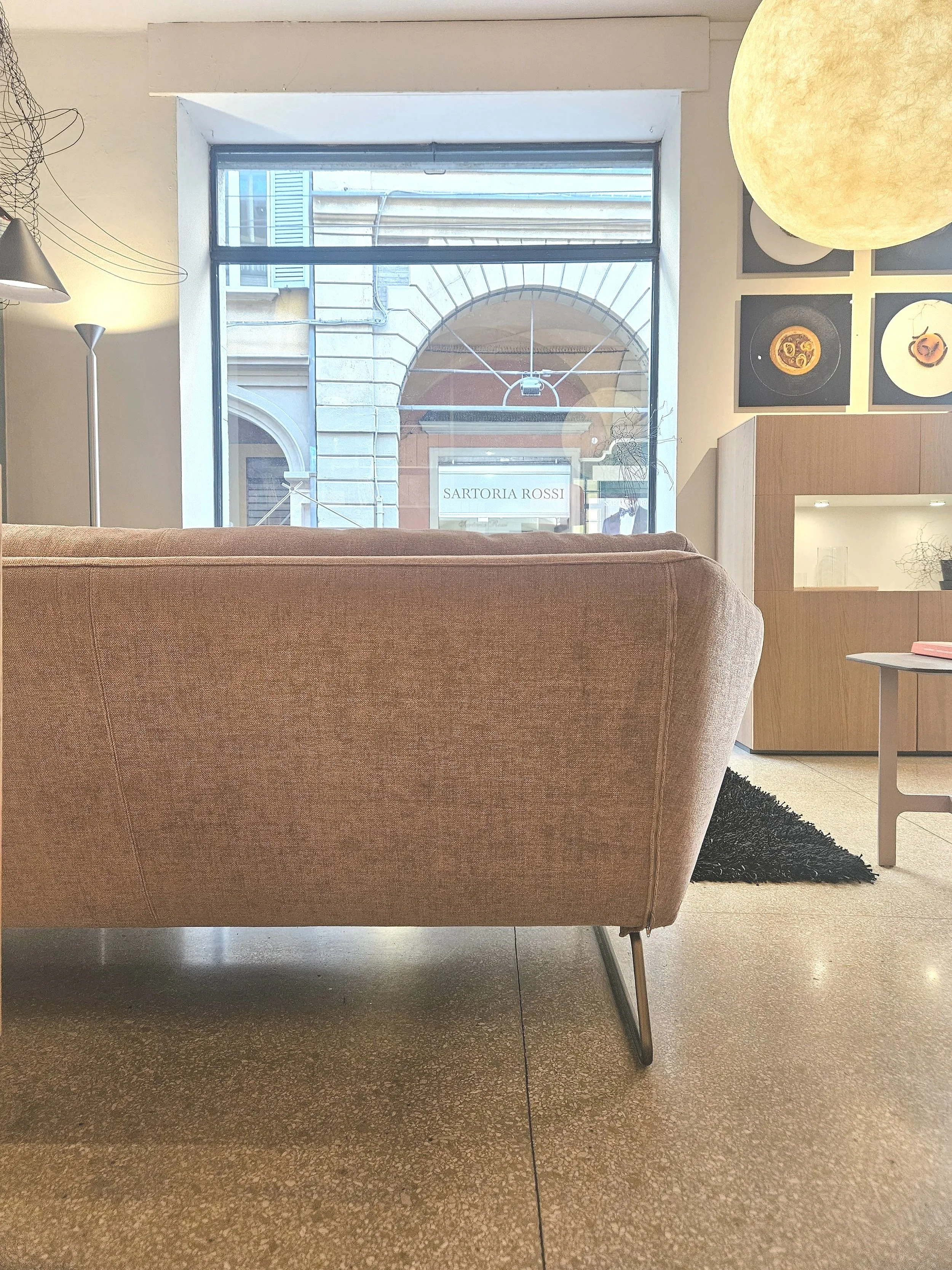 La percentuale di fibra sintetica permette il mantenimento delle caratteristiche nel tempo. Il divano è stato tenuto in showroom, è in condizioni perfette. Si consegna al piano a Bologna e comuni limitrofi, per altre destinazioni contattateci.
